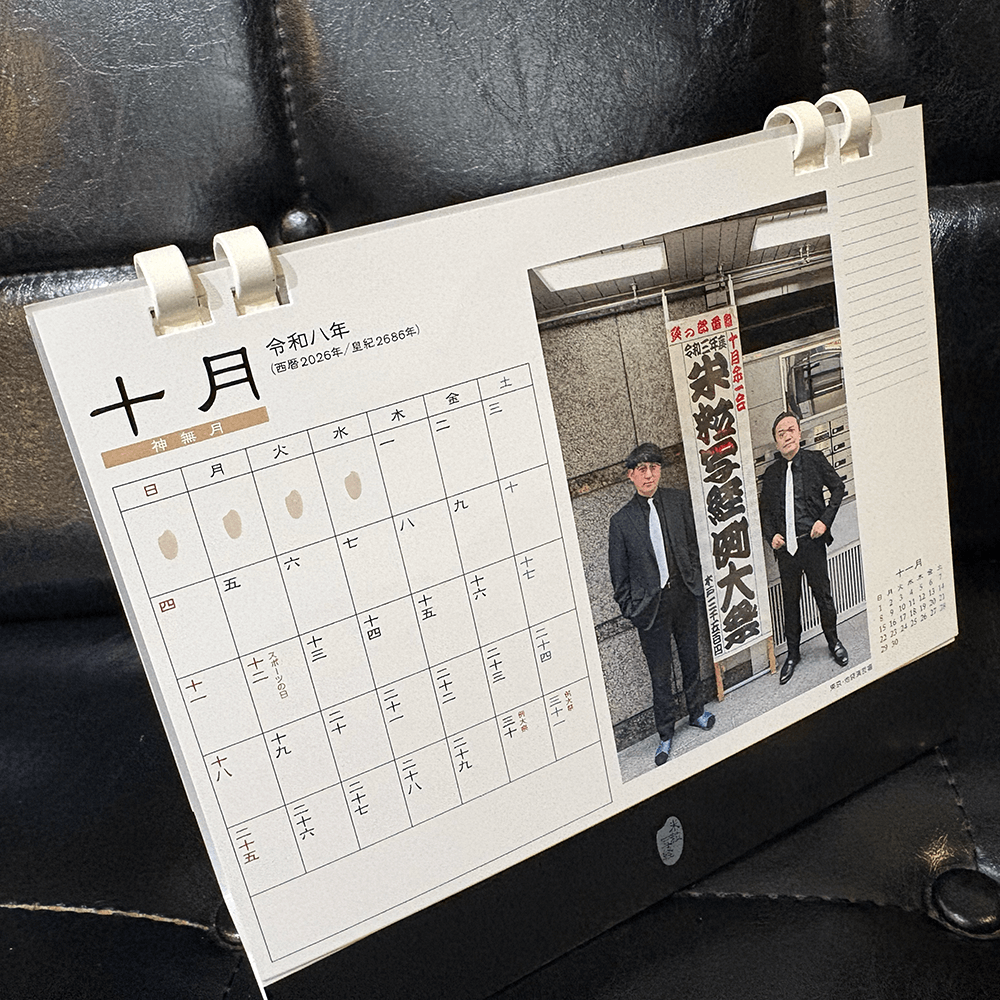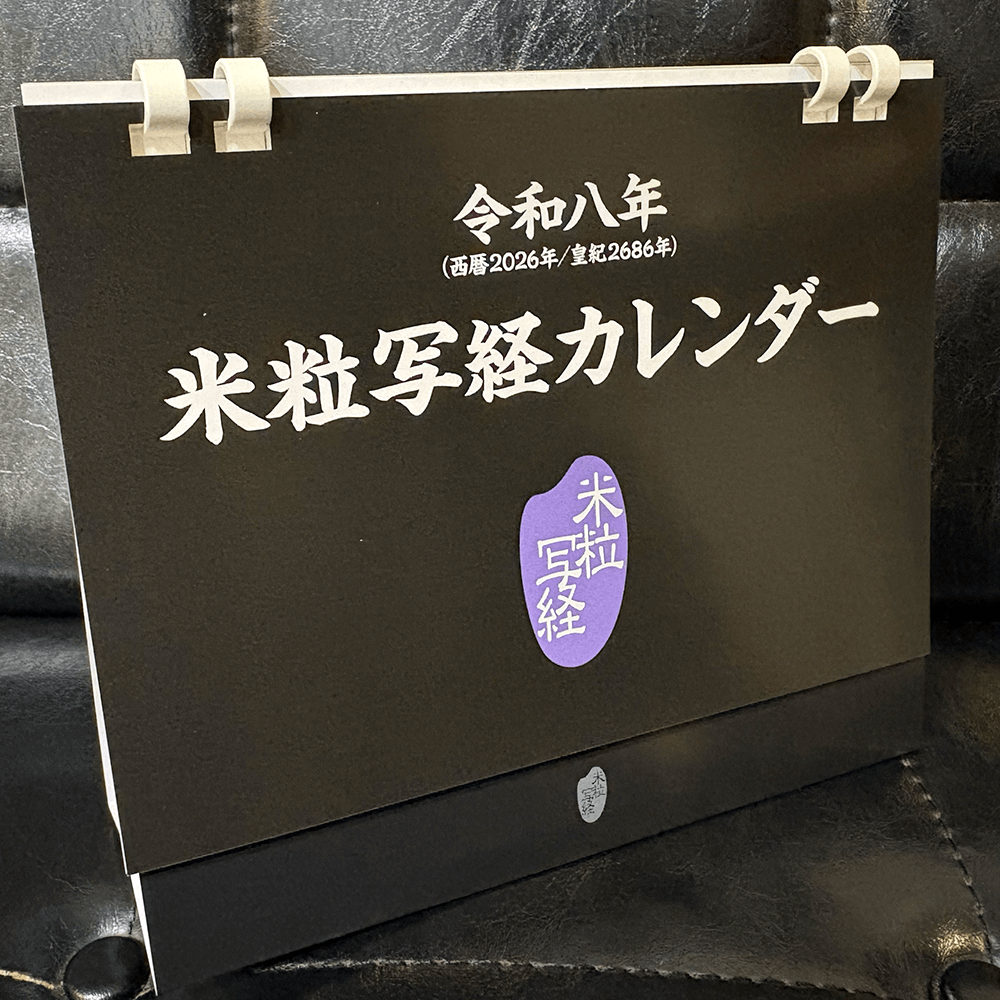 毎年恒例の米粒写経の卓上カレンダー。例大祭十周年を記念して、これまでに例大祭を開催した会場での写真のカレンダーとなっています。
