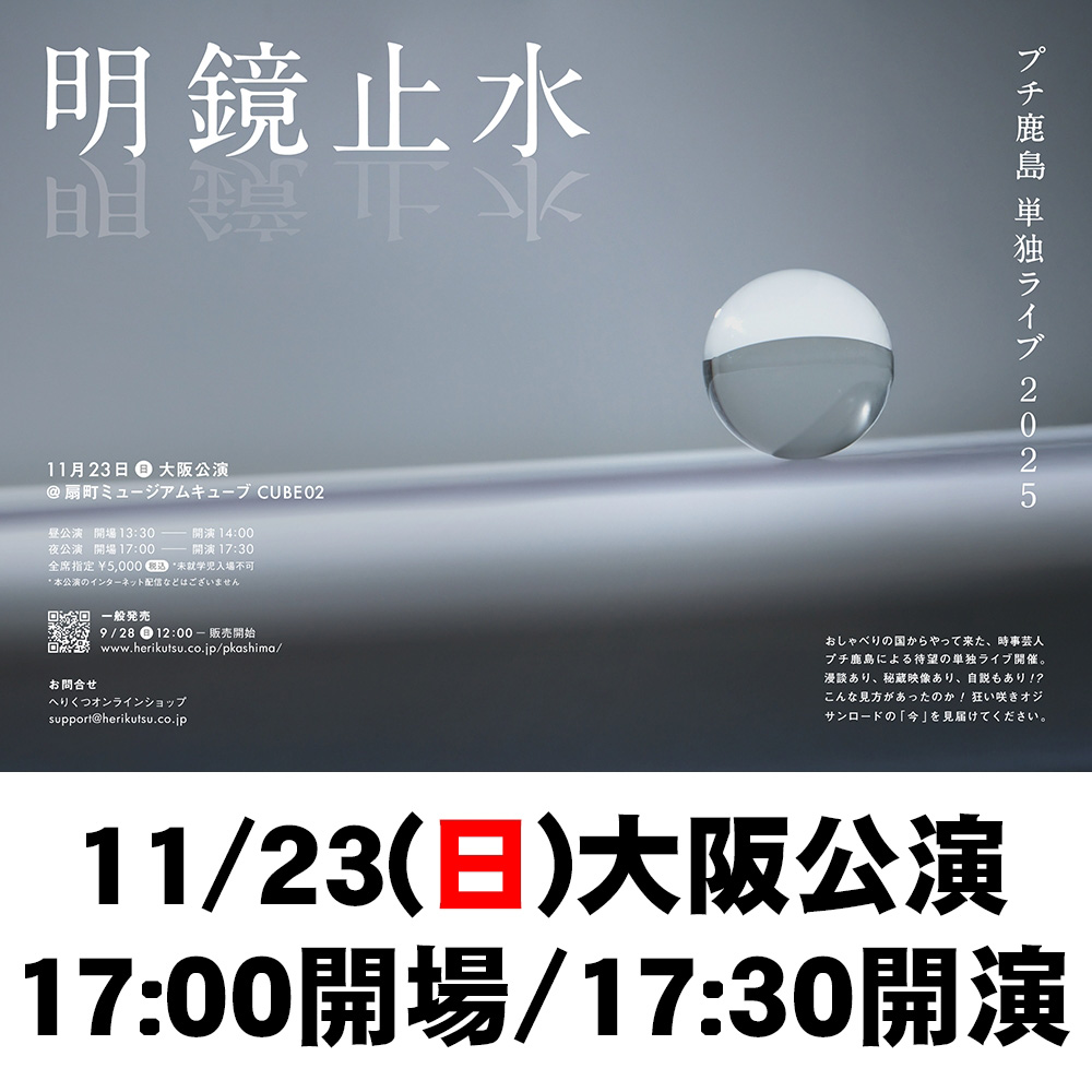 おしゃべりの国からやってきた、時事芸人・プチ鹿島による待望の単独ライブ開催。漫談あり、秘蔵映像あり、自説もあり!? こんな見方があったのか! 狂い咲きオジサンロードの「今」を見届けてください。